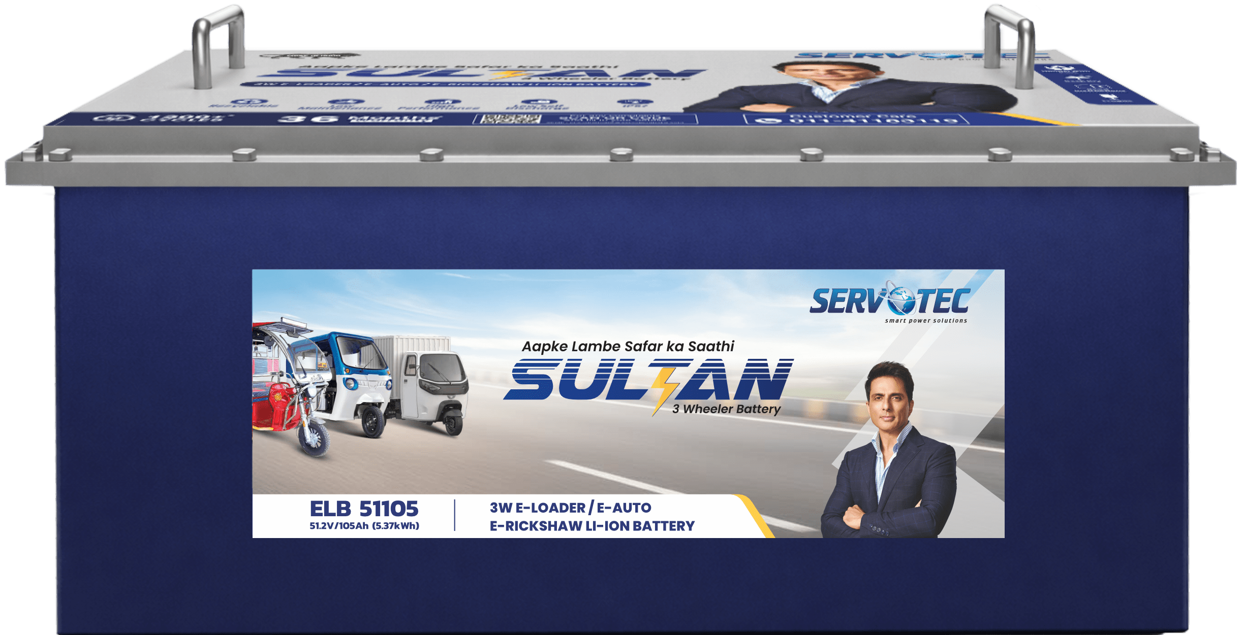 Servotech’s Sultan 51.2V 105Ah Battery is crafted with perfection for electric 3-wheelers to deliver long battery life so you can charge faster and drive farther.