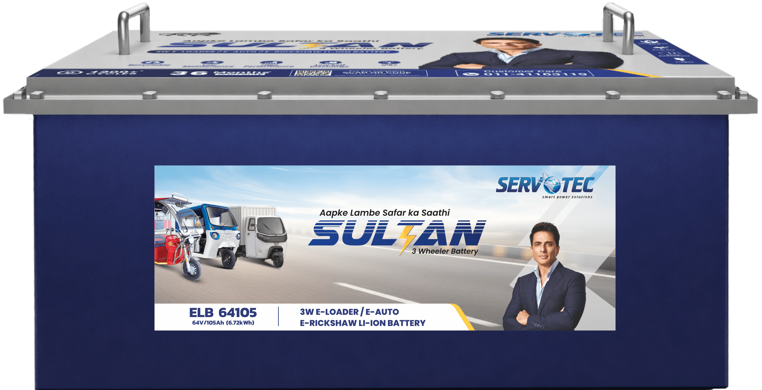 Designed for electric 3-wheelers, the Servotech Sultan 64V 105Ah battery ensures efficient charging, extended drive time, and reliable long-term performance